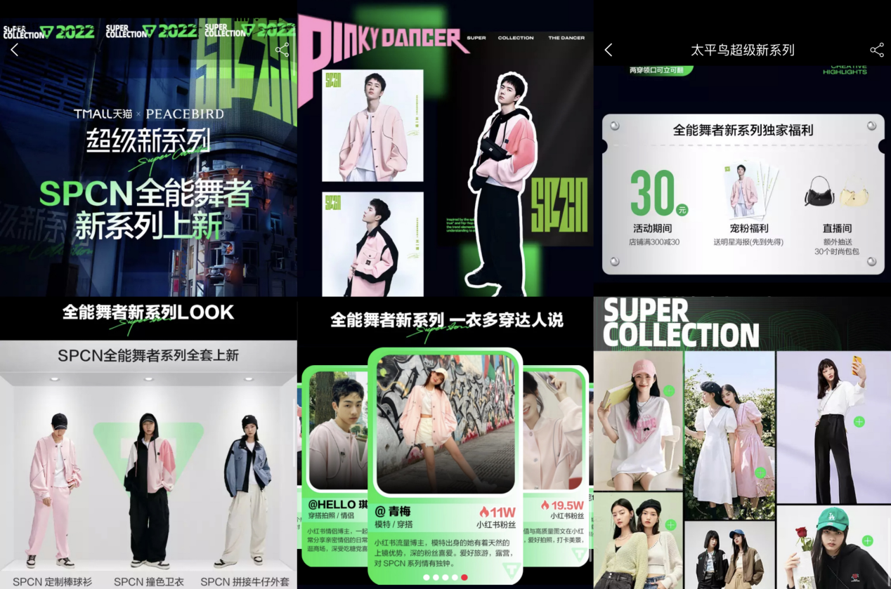 云秀场直播是淘宝天猫服饰“超级新系列”的首次尝试。作为“超级新系列”第一个吃螃蟹的首站展示品牌,太平鸟和淘宝天猫此次的共创与合作颇有渊源。