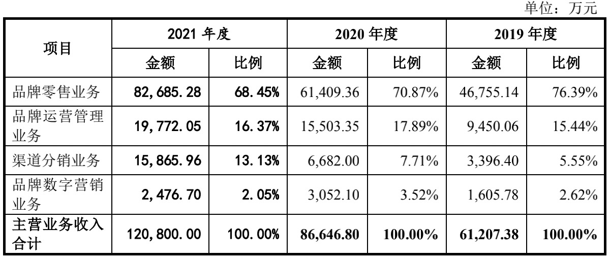 运营管理的品牌则主要为西门子、海俪恩/海昌、美的/小天鹅、美年大健康、巧虎、欧姆龙、妮飘等,2019年-2021年,品牌运营管理收入前五名的品牌收入分别为7351.84万元、1.14亿元、1.18亿元,占该项收入的比重分别为77.80%、73.38%、59.69%。