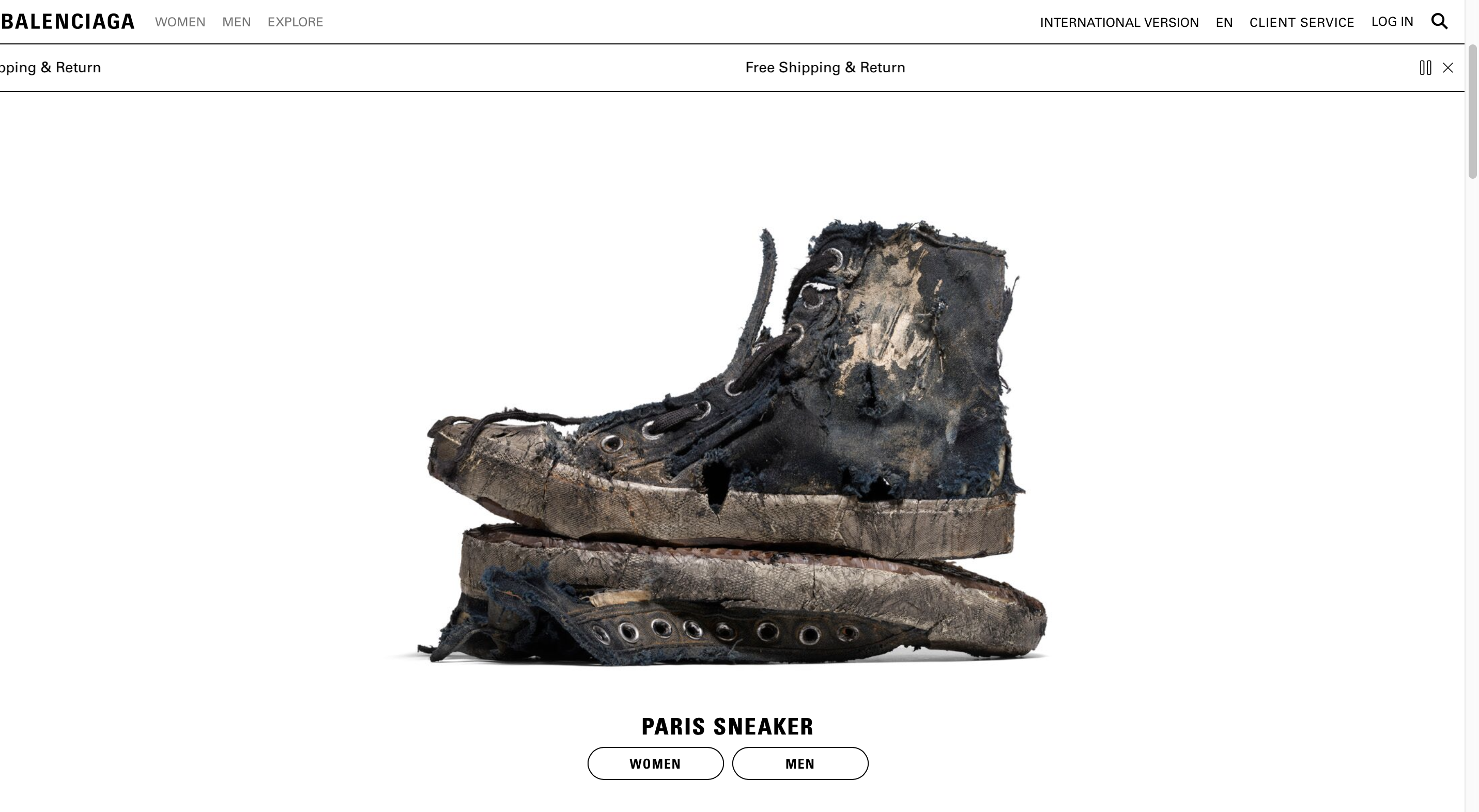 据了解,巴黎世家最新推出的这双高价“破鞋”是为了环保。这双鞋实际上并未使用特殊的环保材料,也不具备可回收的价值,而是因为这些鞋子“非常破旧,有标记,而且很脏”,表明“是要穿一辈子的”,由此体现反对过度消费的环保理念。
