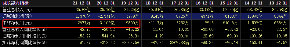 从业务布局来看,明牌珠宝布局光伏属于跨界。跨界背后,明牌珠宝真实盈利能力堪忧。根据明牌珠宝发布业绩预告显示,预计2022年的营业收入为34.5亿-35亿元,归属净利润亏损0.95亿至1.4亿元,同比下滑169.36%至202.21%;预计当期的扣非后净利润亏损0.99亿元至1.45亿元。也就是说,明牌珠宝扣非后净利润将现四连亏。
