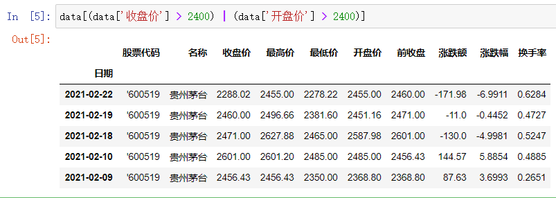 Pandas中用符号 | 表示逻辑或,连接两个逻辑语句,只要其中一个为真就为真。