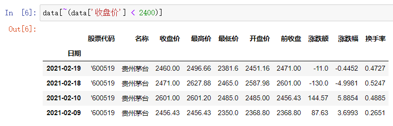 Pandas中用符号 ~ (键盘左上角)表示逻辑非,对逻辑语句取反。