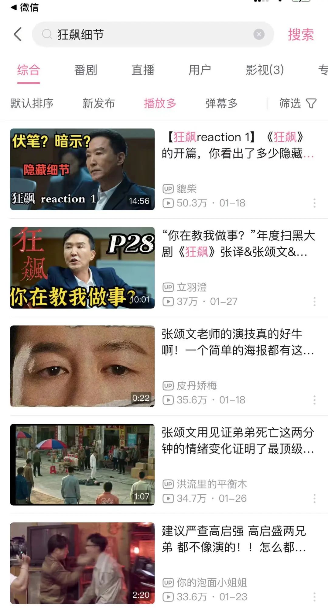 剧集开播后,b站上就出现不少关于《狂飙》的二创视频,其中以细节分析的视频最受网友们欢迎,评论中网友们积极互动,大家对角色和故事的分析畅所欲言。