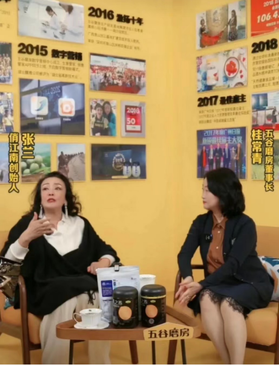 在#张兰董明珠会面#热度仍在之时,张兰又到五谷磨房的直播间,和五谷磨房的CEO桂常青进行一场专场直播带货。