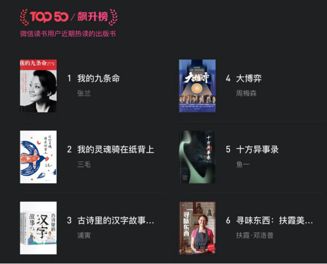 表现最为明显的是,在张兰爆火期间,她的自传《我的九条命》成为微信读书飙升榜第一名,书中讲述了张兰早年离婚,靠自己开创事业,即便在低谷,也可以拉下脸皮从零做起的励志奋斗传奇人生。在这个年轻打工人都想躺平的时代,张兰奋斗精神比任何心灵鸡汤都励志。有网友为了看这本书,甚至开通了微信读书的会员。