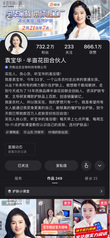 近两天在快手,护肤品牌半亩花田的CEO袁宝华也开启了快手首秀,她主要开设护肤课堂和进行溯源直播,向用户传递护肤行业的信息差和信息价值。