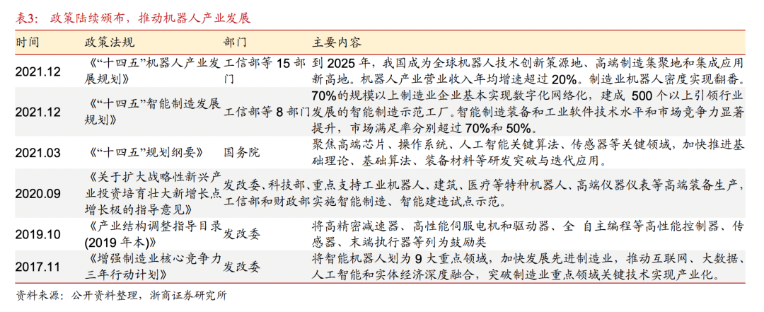 去年年底,工信部等15部门在《“十四五”机器人产业发展规划》中提出重点推进工业机器人、服务机器人和特种机器人重点产品的研制及应用,推动产品高端化智能化发展。
