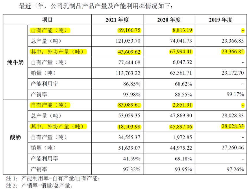 从2021年起,可能是为了上市做准备,认养一头牛的自有产能才大幅增加,与该公司多年来一直宣传的“从奶源保障质量”明显货不对板。