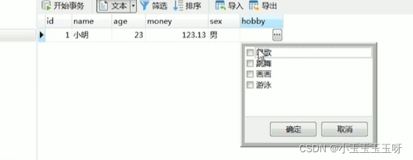 eg:在表里添加性别和名字:名字的类型是varchar,性别的类型是enum,需要在下方值中添加选项,男,女,未知等。