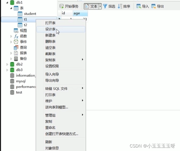 eg:想添加一个money字段,用float类型,可以点击右键,设计表