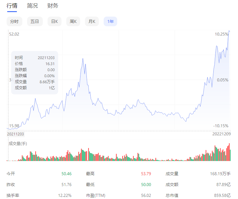 受此影响,连花清瘟的生产厂家以岭药业股价迎来持续暴涨。从曲线图清晰发现,一年前,以岭药业的股价约为16元/股,一年后的12月9日,以岭药业的股价攀升至53.79元/股,一度高至56.94元,股价在一年内最高上涨256%。