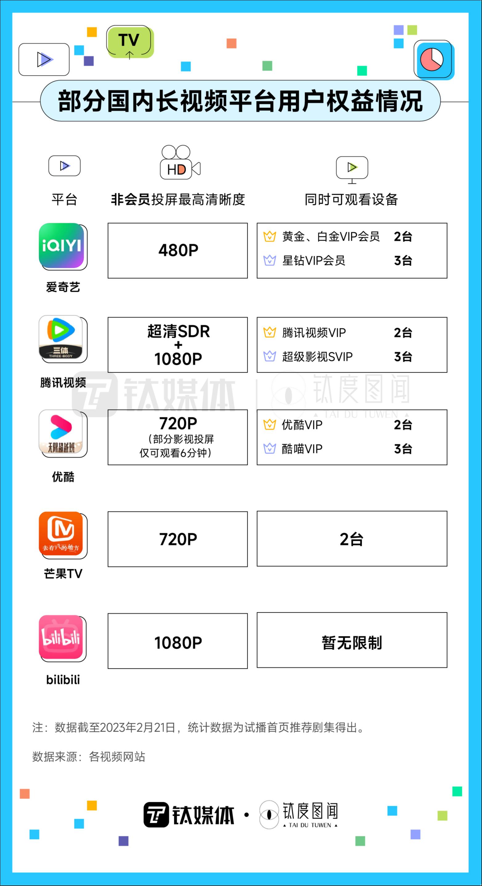 2023年以来,爱奇艺也开始向VIP会员“下手”,先是限制会员投屏清晰度,再限制HDMI连线播放功能,还封禁了多设备登录的账号。经过一段时间的舆论发酵后,爱奇艺于2月20日发出公开信,恢复黄金VIP会员720P和1080P清晰度的投屏服务,并表示不再限制登录设备种类。