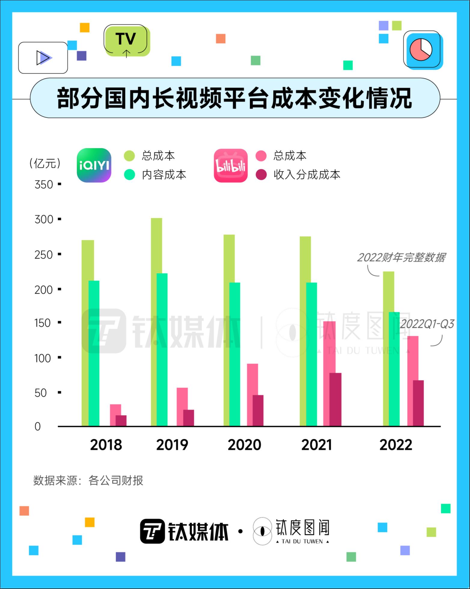 视频平台的盈利情况不见好转的原因之一是成本的不断拔高,作为长视频平台,核心竞争力的内容成本是最大的成本支出项。