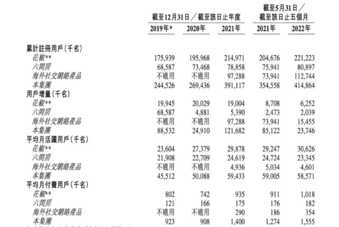 花椒直播的累计注册用户数量达2.2亿名,拥有注册主播约1010万名,平均月活跃主播超过20万名。2022年上半年,花椒直播月活用户数为3062万,较2018年减少了1000多万。而在招股书上,花房集团用户数的上涨也是源于其收购海外社交产品合并而来,并非自身业务增长所致。