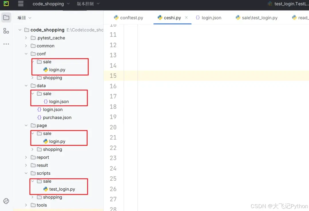 目前项目使用以下4个文件即可实现,先建立safe文件夹,再依次建立login.py、login.json、login.py、test_login.py四个python文件