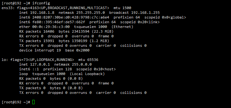 此时在敲出ifconfig大功告成