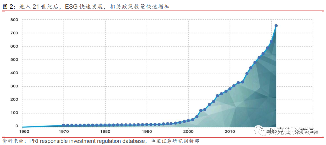上世纪50年代,投资界有一次“伦理投资”高潮;60年代,又兴起的一次“社会责任投资”高潮;70年代开始,“伦理投资”和“社会责任投资”逐渐演变出“可持续发展”的观念,并推动“环境保护投资”的实践,这也是ESG概念的雏形。