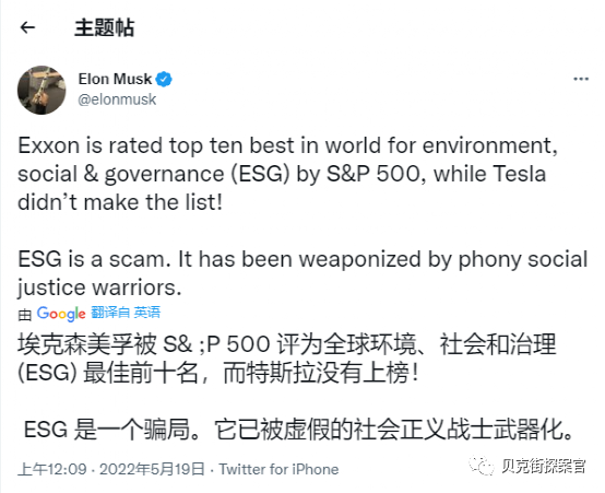特斯拉被剔除ESG指数,和特斯拉电动车企的身份没有任何关系。
