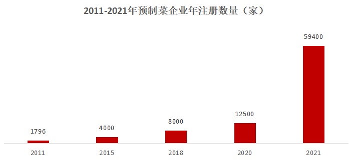 截至目前,我国现存预制菜相关企业6.71万家,2018年预制菜相关企业注册量超过1.01万家,同比增长11.22%。2019年新增1.28万家,同比增长21.56%。2020年新增1.28万家,2021年新增4209家。