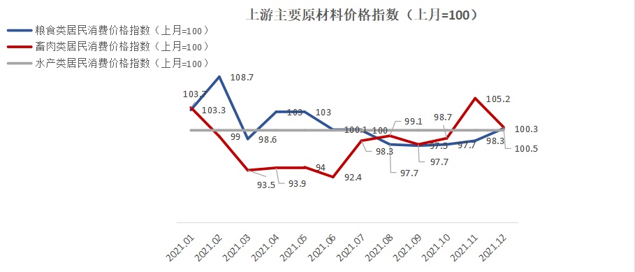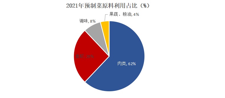 上游主要是原料,直接影响预制菜市场原料价格; 由于预制菜原料使用量占比中最为突出为肉类,并且肉类价格波动较为明显,对预制菜制造企业影响比较大。