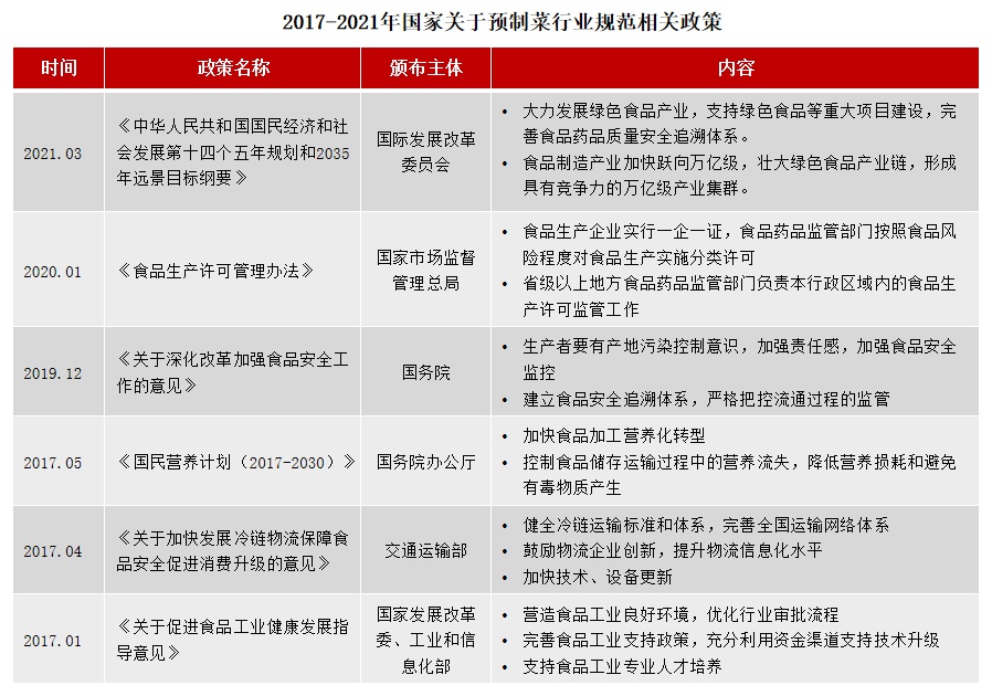 从2017年以来,国家出台了一系列食品加工相关政策,营造食品工业良好发展环境,有助于加强预制菜行业发展。