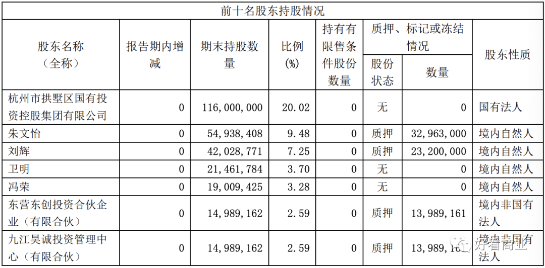 公司最大的股东为杭州市拱墅区国有投资控股集团有限公司,目前其持股比例为20.02%。