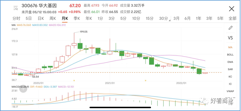 受核酸检测业务不再高增长等因素影响,华大基因的股价也在2020年后一路下滑。