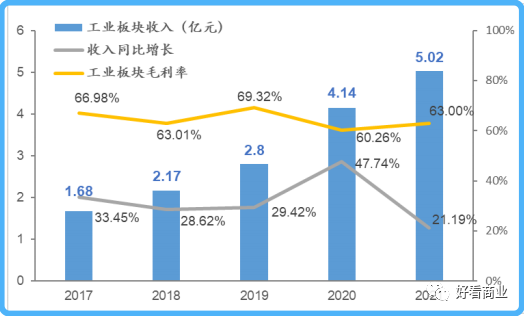 2021年,该业务营收同比增长125.6%。同期,集约化业务/区域检验中心业务和工业板块业务的营收同比增速分别只有25.33%和21.19%。