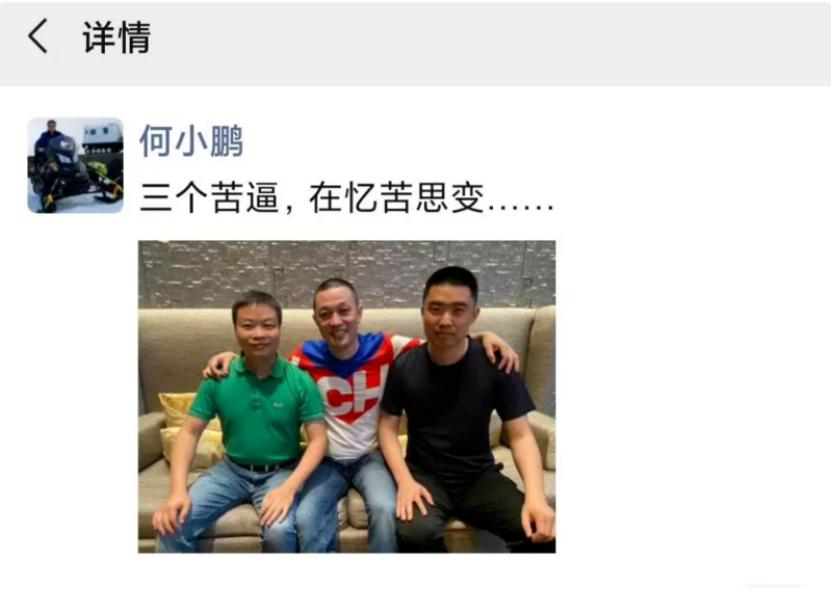2020年6月,小鹏汽车CEO何小鹏在朋友圈po出一张与李斌、李想并排而坐的合照,配文道: