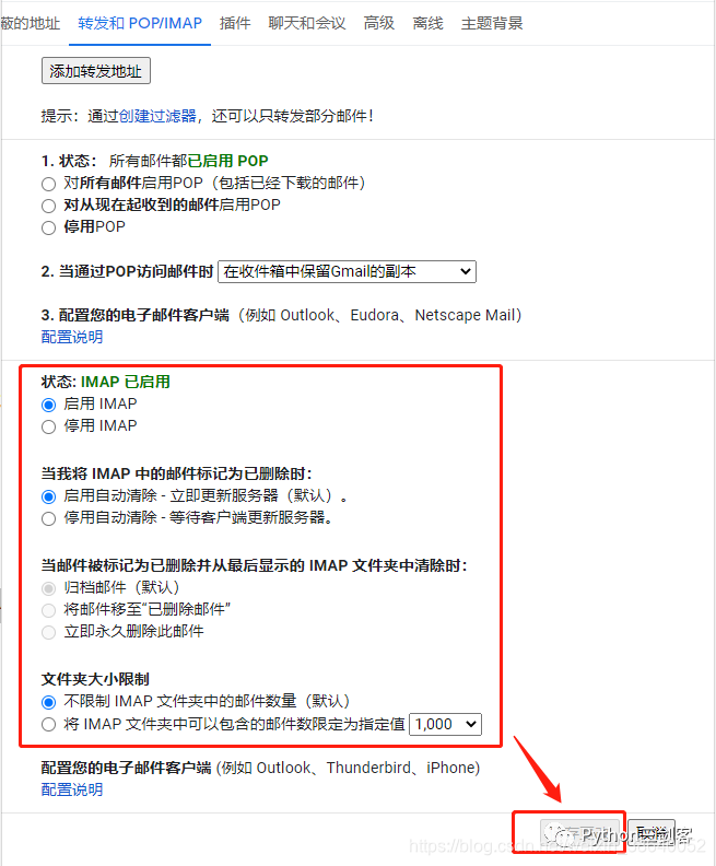4、启动IMAP功能 【根据下图设置 -> 保存更改】
