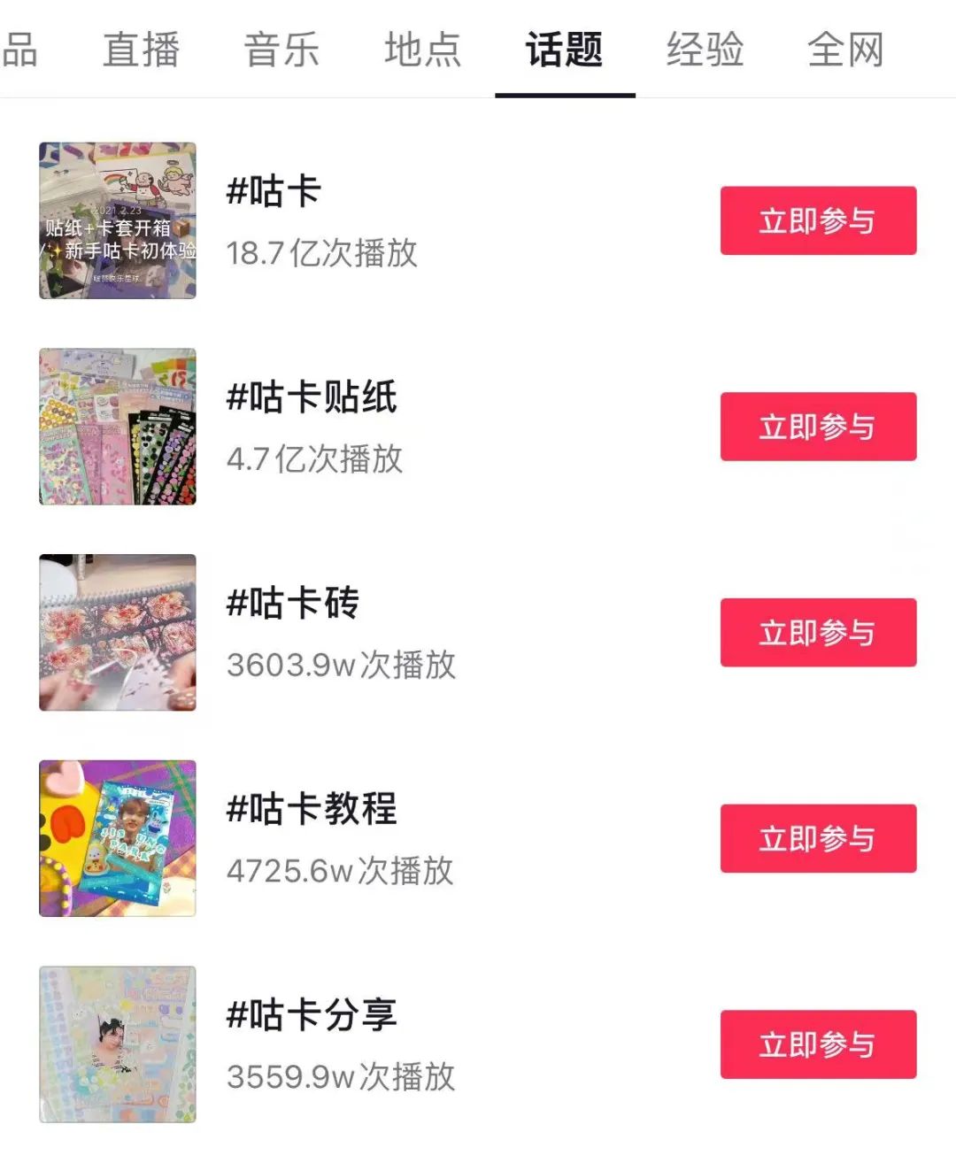 而在抖音,#咕卡的视频播放量已超过18亿。在小红书,“咕卡”笔记多达55万篇,远比媒体关注更多的围炉煮茶和电子木鱼更有普及度。