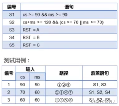 如果题目是关于路径覆盖则还需要先写出每条路径 如①->②->③ (注意:必须有开始结点和结束结点)最后结果需要画出下面两个表