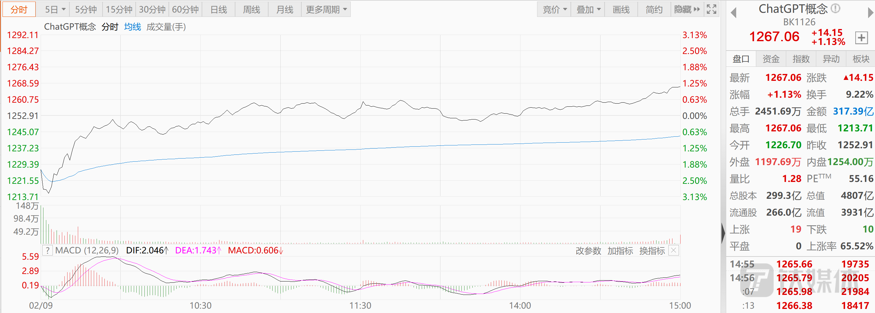 今日ChatGPT概念股盘中探底回升,最后收涨,主要表现出来的特征就是分化。