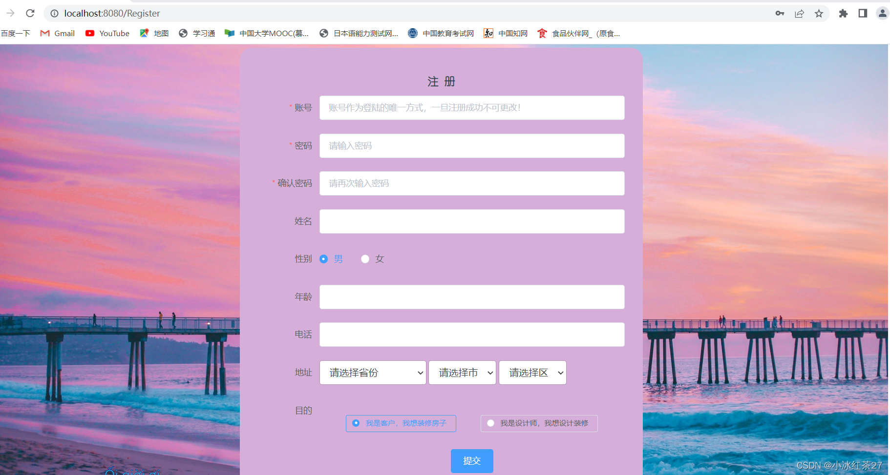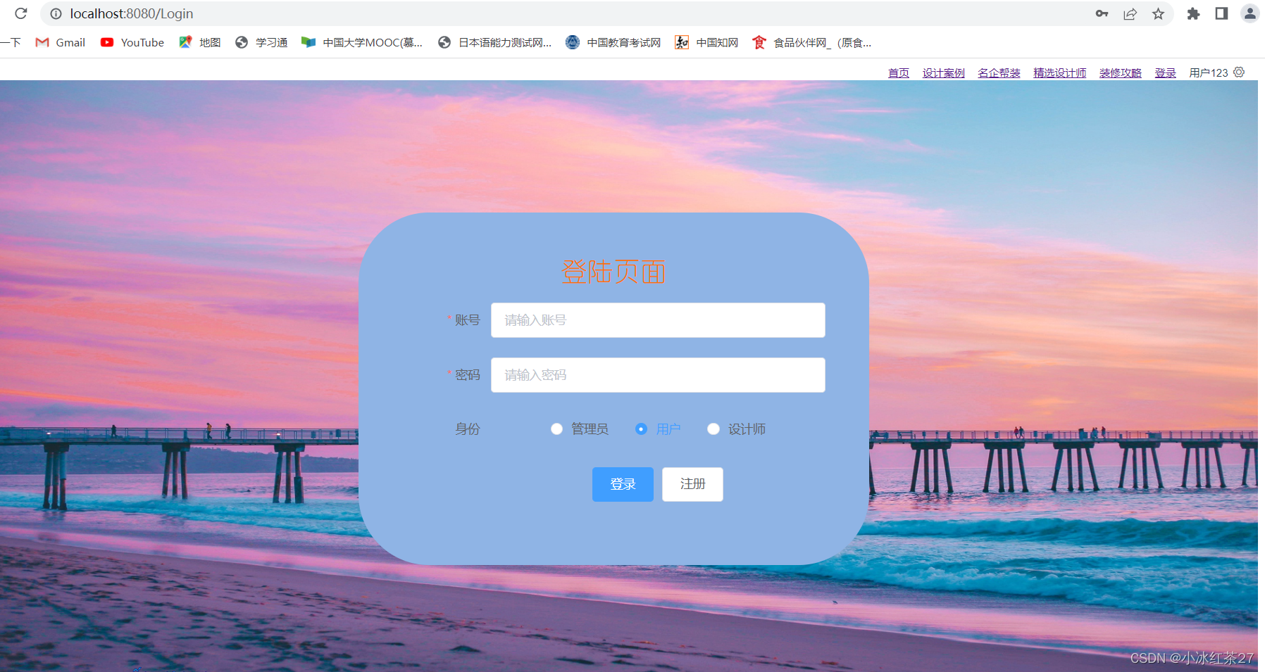 注册功能:只允许用户和设计师注册,用户可以直接注册成功,设计师提交材料后注册需要管理员审核成功后方可注册成功。