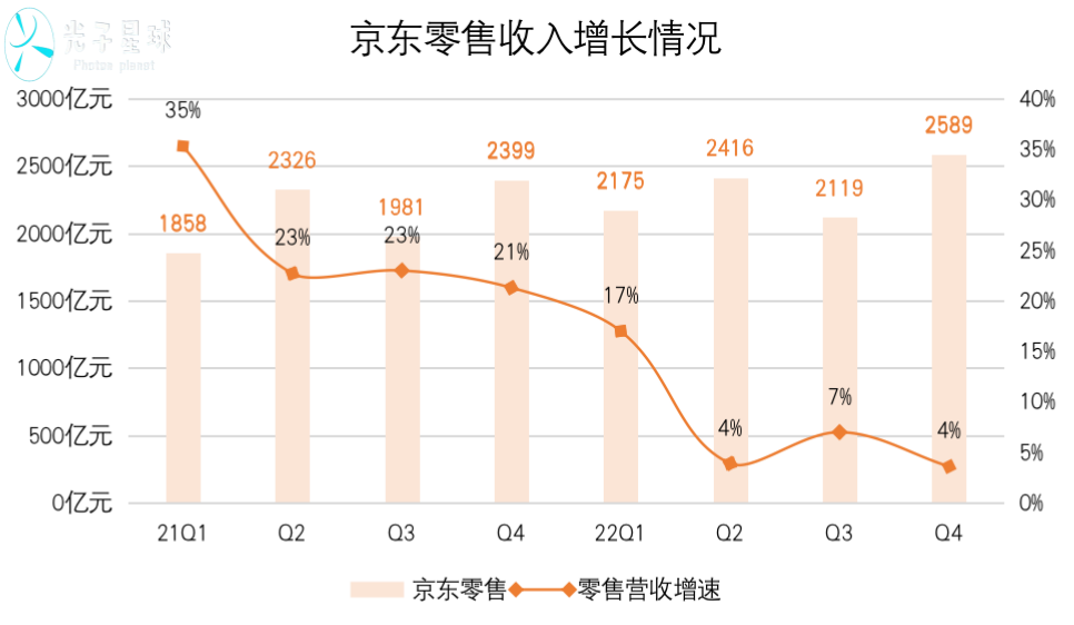 日前,京东披露2022年全年财务数据,去年全年,京东零售实现营收9299亿元,同比仅增长7%,其中包含双11在内的第四季度营收增速仅为3.6%。