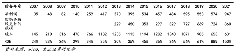 在过去的10年间,苹果进行了动辄百亿美元以上的回购,可谓是美股市场一大亮点,其高明之处在于不仅改善了EPS表现,且通过降低权益规模(流通股本减少),可以迅速优化ROE表现,增长率也随之增长,对应前文公式,股价溢价就进入了快轨道。