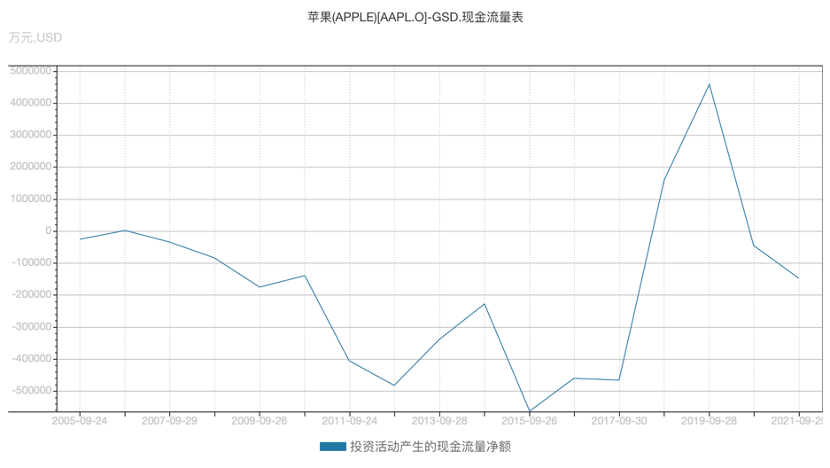 在上图中我们看到苹果投资性现金流在2015年之后趋于保守的,对比中概代表企业我们看到的是投资活动所消耗资金的剧烈上扬。