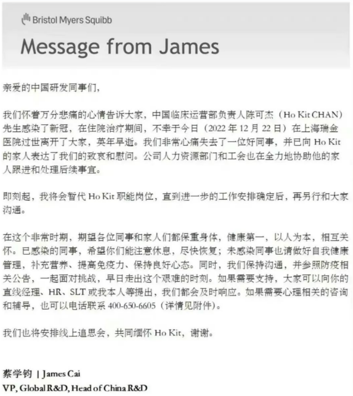 就在同一天,上海另外一家外国药企高管荷兰帝斯曼财务共享中心负责人赵慧也因感染新冠而去世,年仅41岁。作为两家全球知名药企,均有高管因新冠感染而离世,他们能享受到的医疗条件和用药条件,远非普通人可比,相继离世或能从侧面说明,新冠特效药Paxlovid并没有传说中那么神奇。