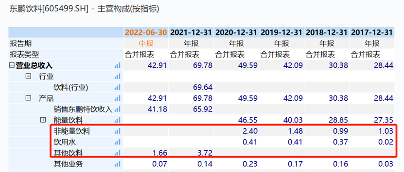 面向未来,东鹏饮料有两条路: 一是多元化,二是全国化 。多元化 (非能量饮料+饮用水+其它饮料) 目前来看不温不火,2017年营收1个亿出头,2021年3.7亿元,没有新的爆品诞生。未来,能量饮料大单品如何更好的从广东走向全国是东鹏的重中之重。