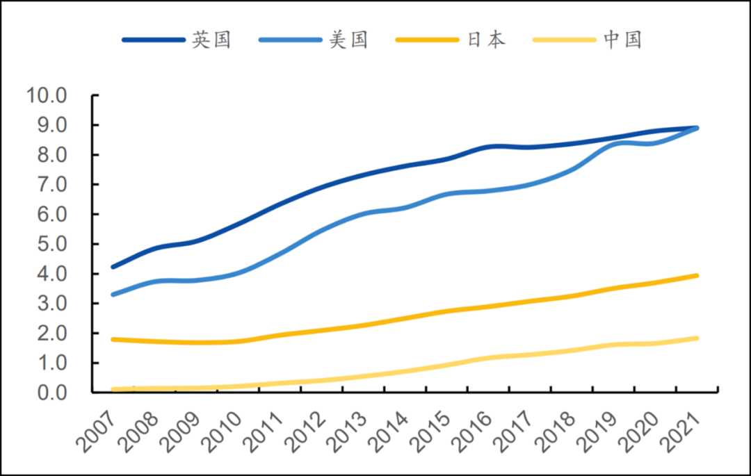 根据Euromonitor (欧睿) 的数据,2021年美国、日本和中国人均能量饮料消费量分别为8.9L、3.9L和1.8L。经过计算,我们发现 在广东,人均消费量已经达到美国水平 ,已经非常的成熟。