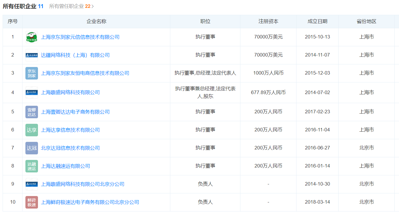 天眼查资料显示,蒯佳祺目前在11家企业任职,其中,在上海京东到家元信信息技术有限公司担任执行董事,该公司注册资本为70000万美元。