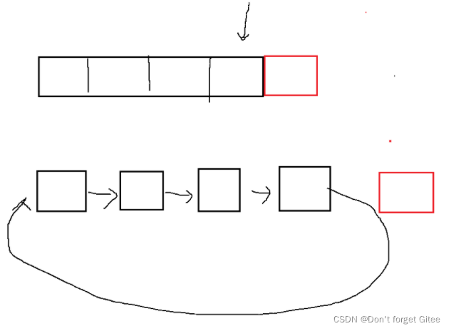 数组的优点:(也是单链表的缺点) 因为tail只能指向末尾数据的下一个地址,如果要找尾结点数据时,单链表找tail的上一个节点很费劲,数组就只需要tail-1就能找到。