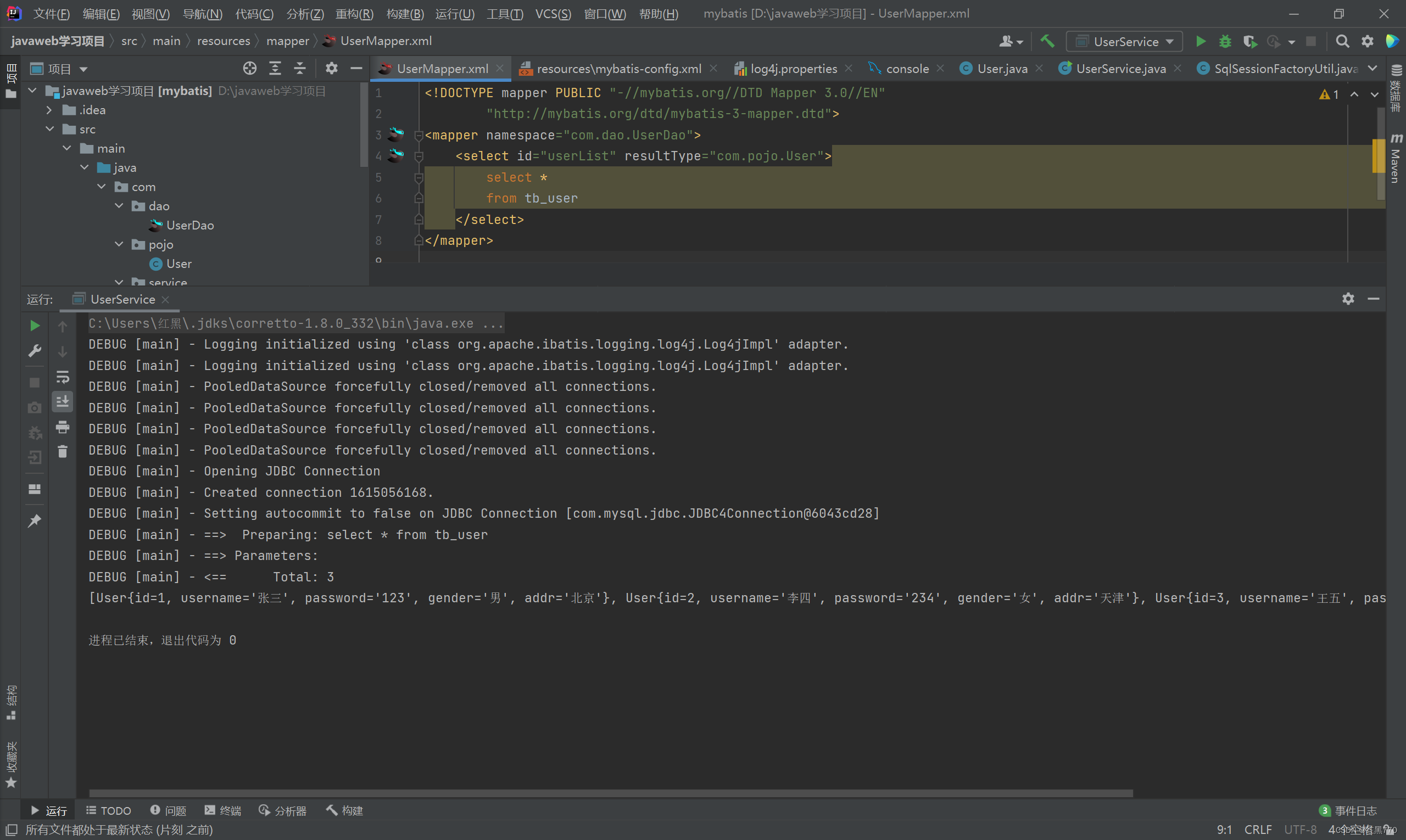 UserMapper.xml配置文件