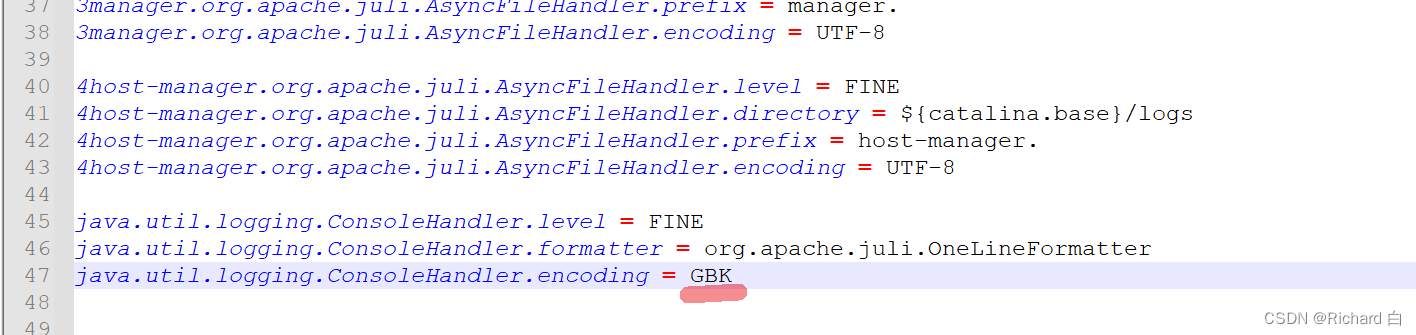 2、将日志的编码格式也修改一下,打开tomcat的\conf\logging.properties