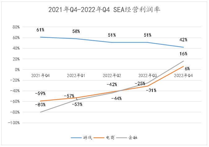 四季度,SEA游戏业务实现经营利润4亿美元,经营利润率较去年同期有所下降。但公司电商业务经营利润1.09亿,经营利润由2021年同期的-59%提高到6%。金融业务经营利润实现0.62亿美元,经营利润率由2021年同期的-80%提高到16%。