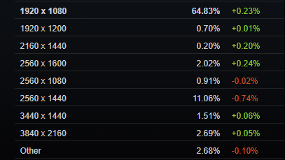 但是从steam的统计来看,4K分辨率在玩家中的占比其实很小,即使加上3440*1440这样的伪4K分辨率,全球也仅有约4%的玩家在使用4K显示器作为游戏显示器。