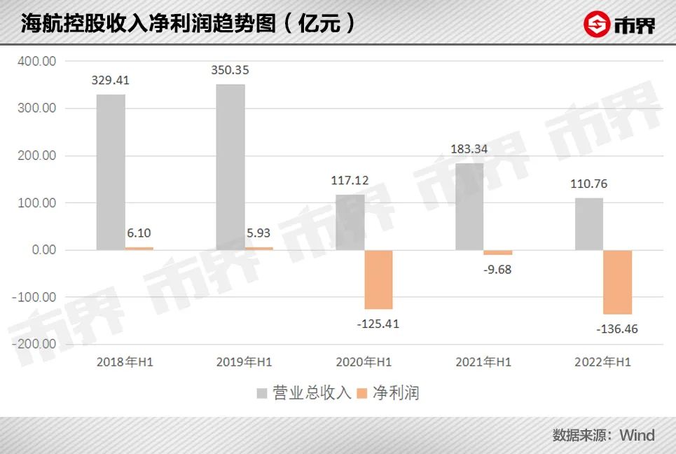 最新数据显示,海航控股2022年上半年收入110.76亿元,同比减少39.59%,净利润为亏损136.49亿元,亏损额同比扩大了126.78亿元——如果按照半年182天计算,相当于每天亏掉近7500万元。