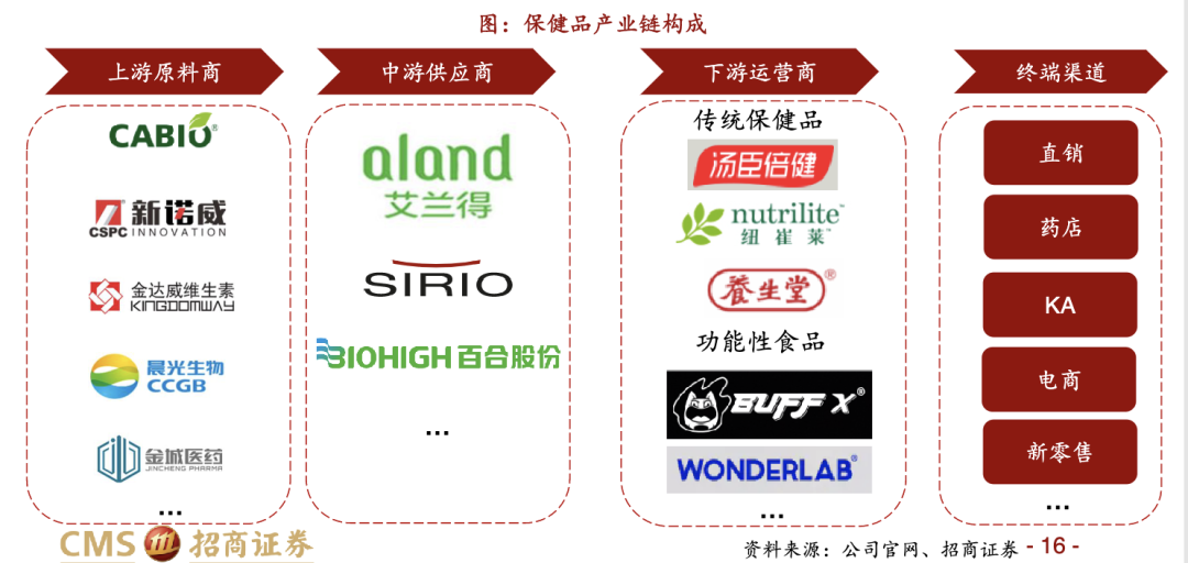 这对于保健品品牌来说,是一次发展机会。目前,国内规模较大的保健品生产商包括:广东的仙乐健康和汤臣倍健、江苏的艾兰得、山东的威海百合。全球领域规模较大的保健品生产商包括:欧洲的AYANDA、澳大利亚的LIPA、美国的Pharmavite,以及美国的GNC。