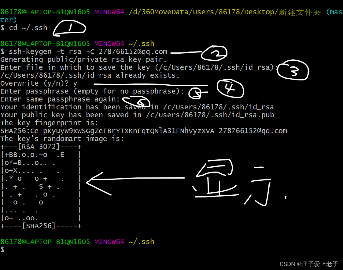 看到这句后 就说明你操作的没错:Generating public/private rsa key pair.