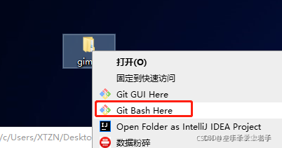 **2、安装成功后,桌面上右击,然后选择Git Bash **
